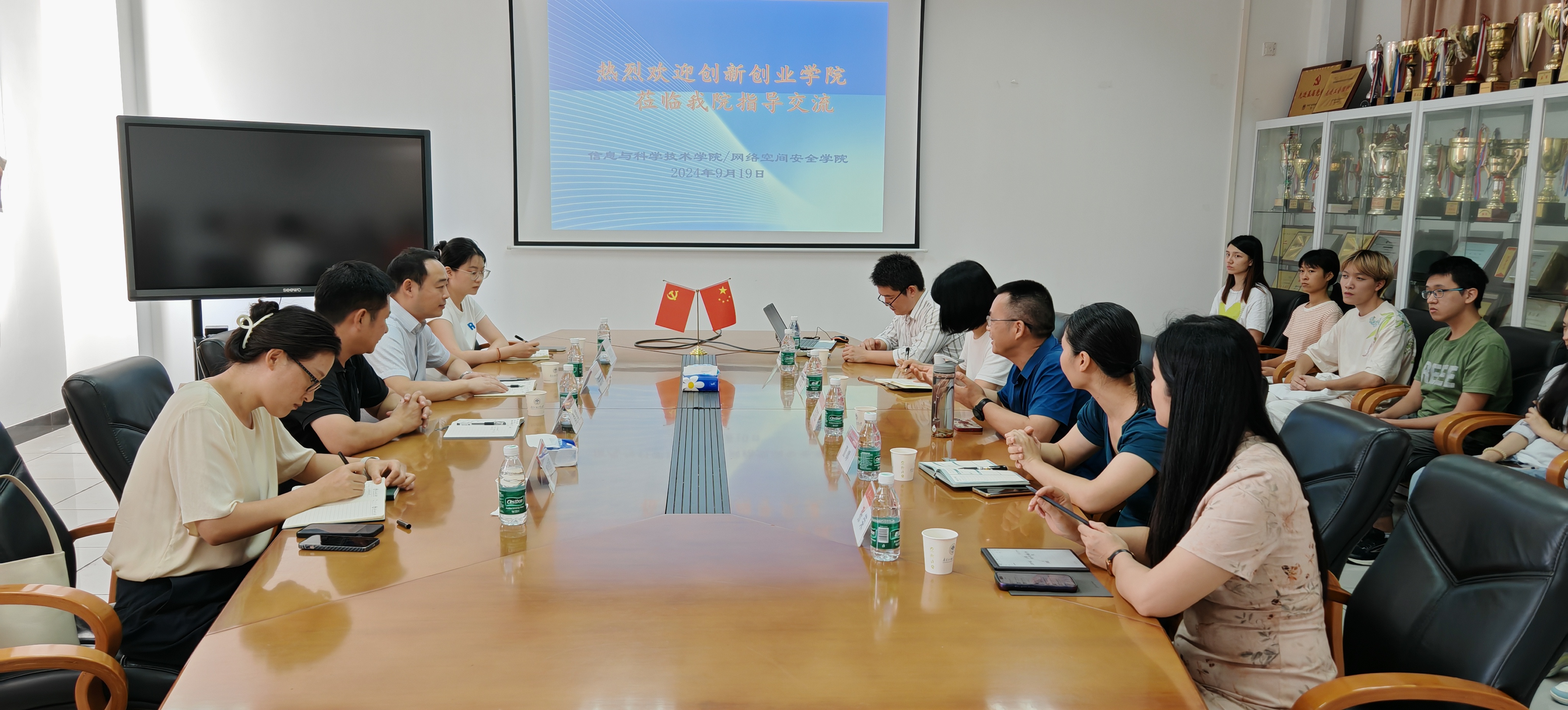 9月19日,商学院党委书记、创新创业学院常务副院长肖锋,创新创业学院副院长刘方龙带领学院工作人员,前往信息科学与技术学院进行创新创业工作调研交流。信息科学与技术学院院长王常吉、党委副书记刘玉丽、相关辅导员与学术科技团队代表参加此次交流会。