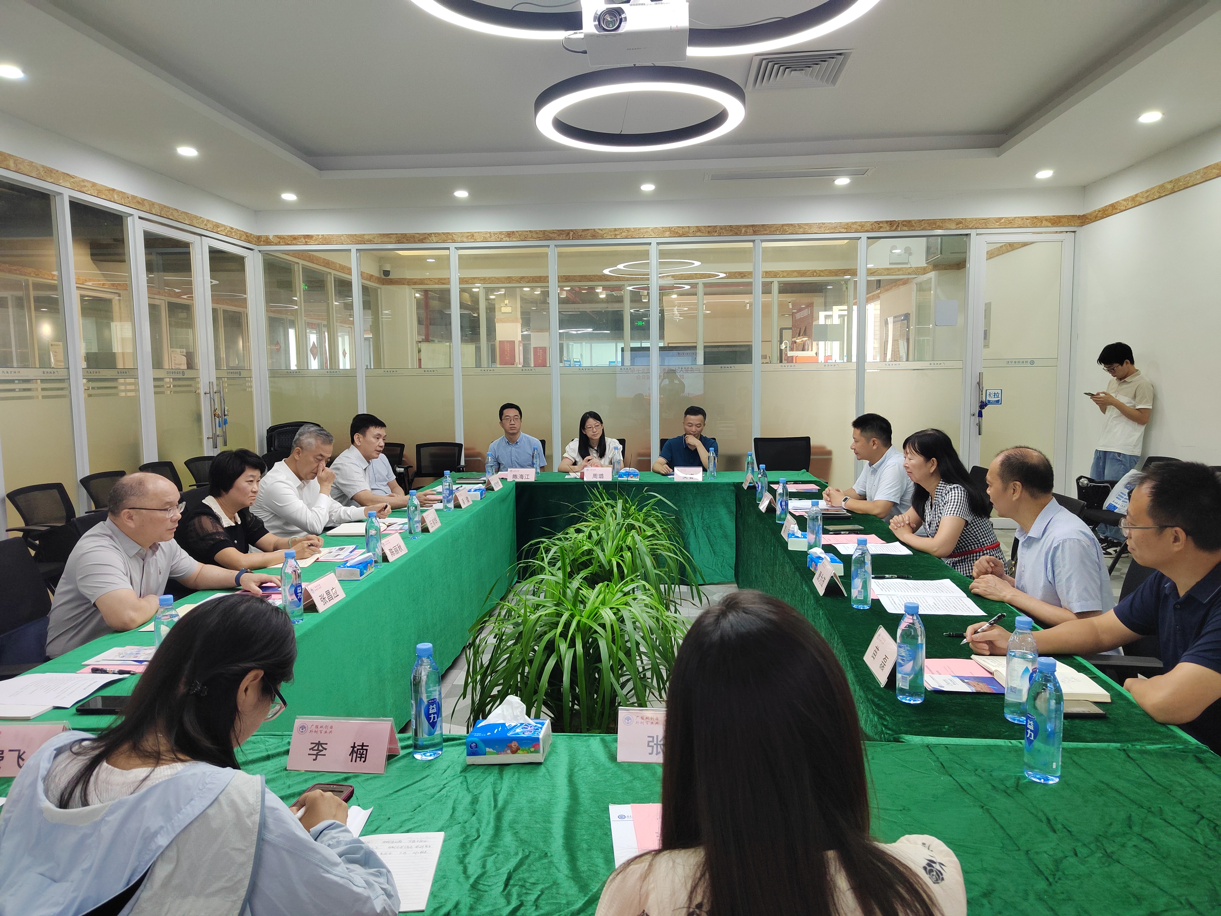 调研组一行参观了国家级创新创业教育实践基地。肖锋详细介绍了学院办公区、创新创业团队办公区、路演区、商事服务中心等功能布局以及各创业团队的发展现状与近期成果。宽敞明亮的空间、完善的设施配套,以及浓厚的创新创业氛围,给调研组留下了深刻印象,大家纷纷对基地建设成果给予高度评价。