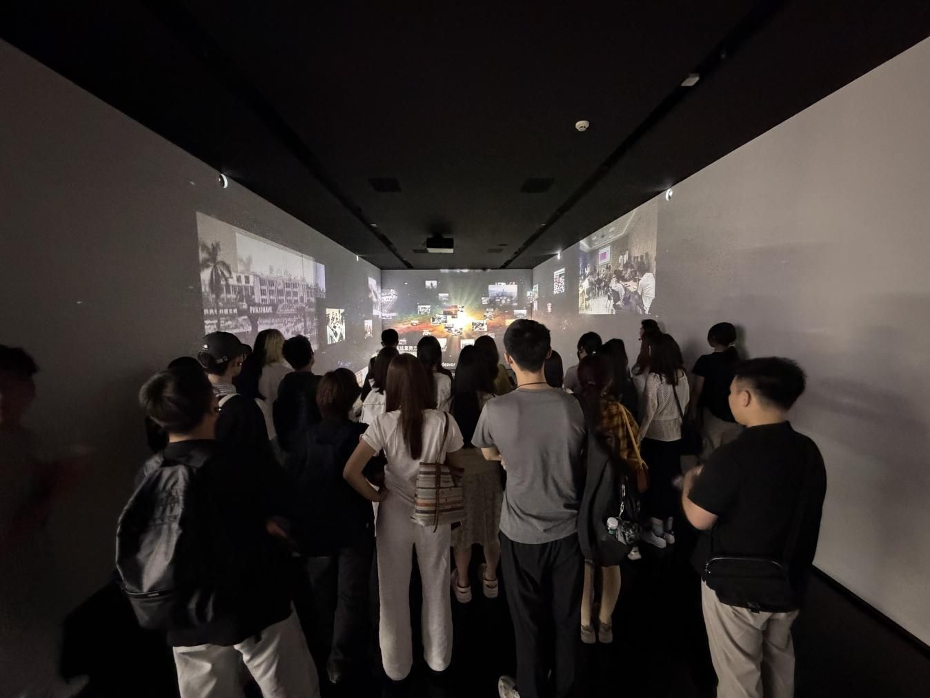 随后,讲解员带领同学们回顾了唯品会的发展历程:从白鹅潭起步,逐步扩展至琶洲总部,并重点介绍了企业内部的文化设施。在展示企业历史与文化的区域,同学们欣赏了唯品会收藏的多幅书画真迹,其中特别展出了以“广州十三行”历史贸易为主题的艺术作品,生动呈现了广州作为千年商都的商贸传承脉络,也让同学们感受到企业将本土历史底蕴融入现代管理的文化意识。