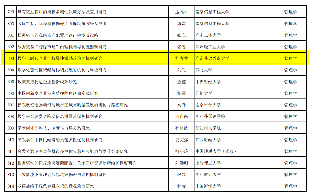 11月14日,全国哲学社会科学工作办公室正式公布2023年度国家社会科学基金后期资助项目立项名单,创业学院副院长刘方龙副教授申报的创新创业类项目《数字化时代企业产权属性激励及治理机制研究》获得立项!该项目是我校本次获得资助的唯一管理类项目。
