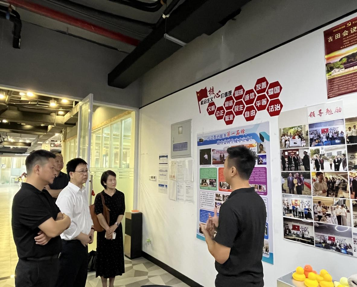 梅小安一行首先参观了我校国家级创新创业教育实践基地,走访各功能活动区域、多功能商事服务中心及学生创新创业团队办公室,并与我校学生创新创业团队进行了深入的交流。
