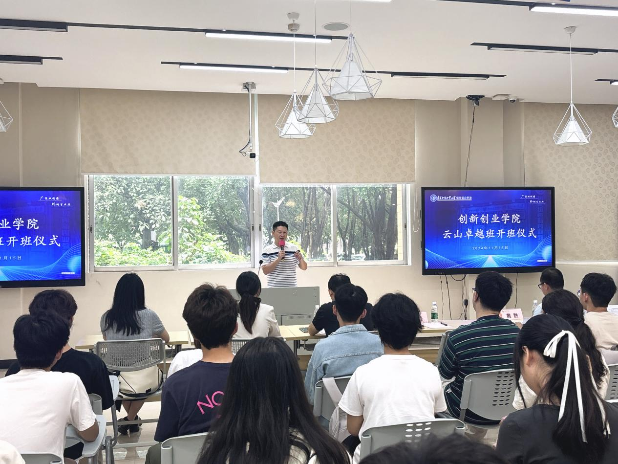 肖锋发表了开场致辞。他首先对在场同学经过层层选拔成为首批学员表示祝贺,并指出,云山卓越班旨在培养一批具备创新精神与创业素养高素质人才,为学校创新创业事业发展注入新活力。肖强调,创新是国家和民族发展的不竭动力,希望云山卓越班的全体学员为学校的创新创业事业做出贡献、为地区发展培养火种。他鼓励新时代青年要积极培育创新精神,积极参与中国国际大学生创新大赛等含金量高的创新创业赛事通过实践锻炼自身还指出,学员们要结合自己的专业特色,识别具有潜力的机会进行挖掘和创新,努力成为新时代的创新创业先锋。