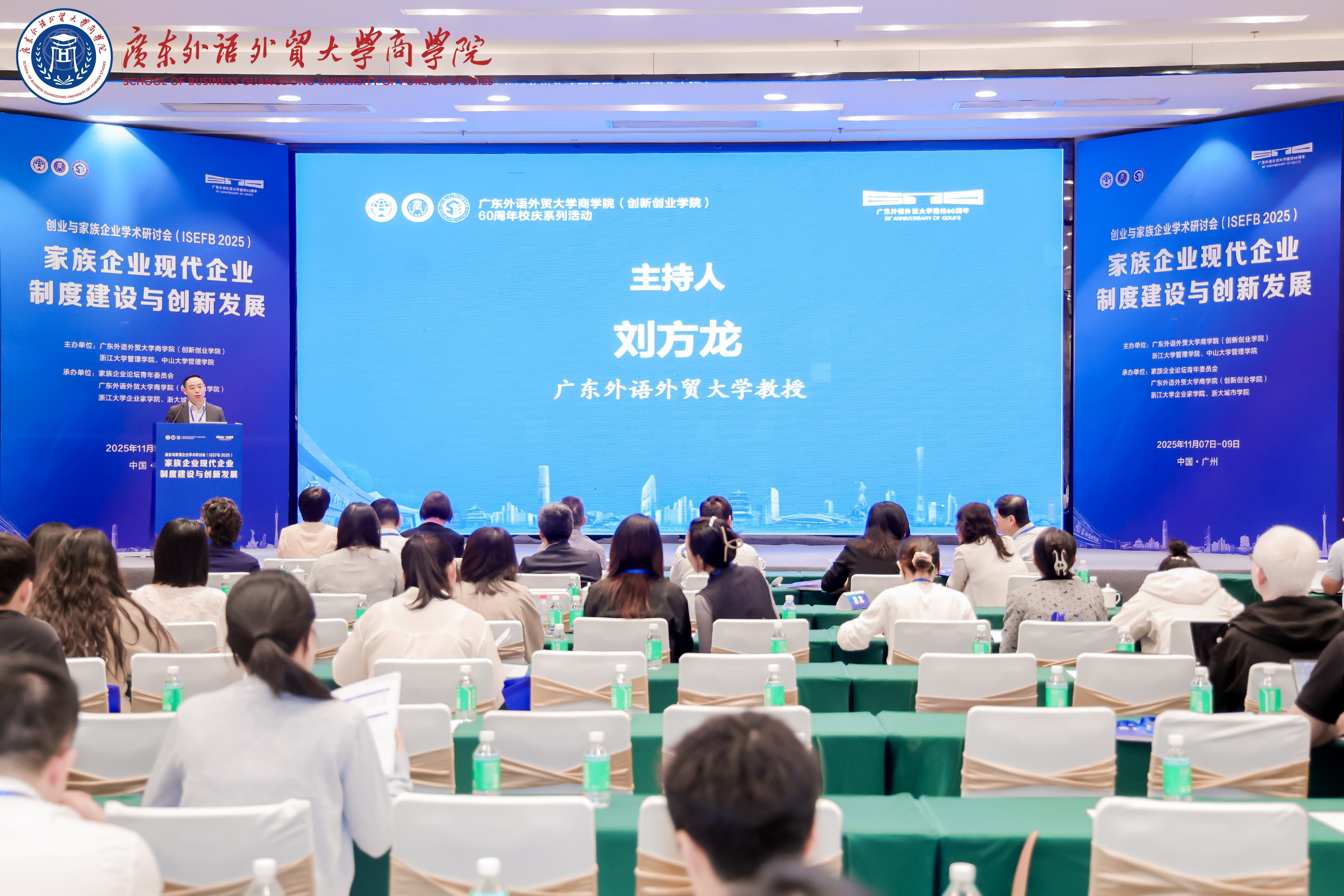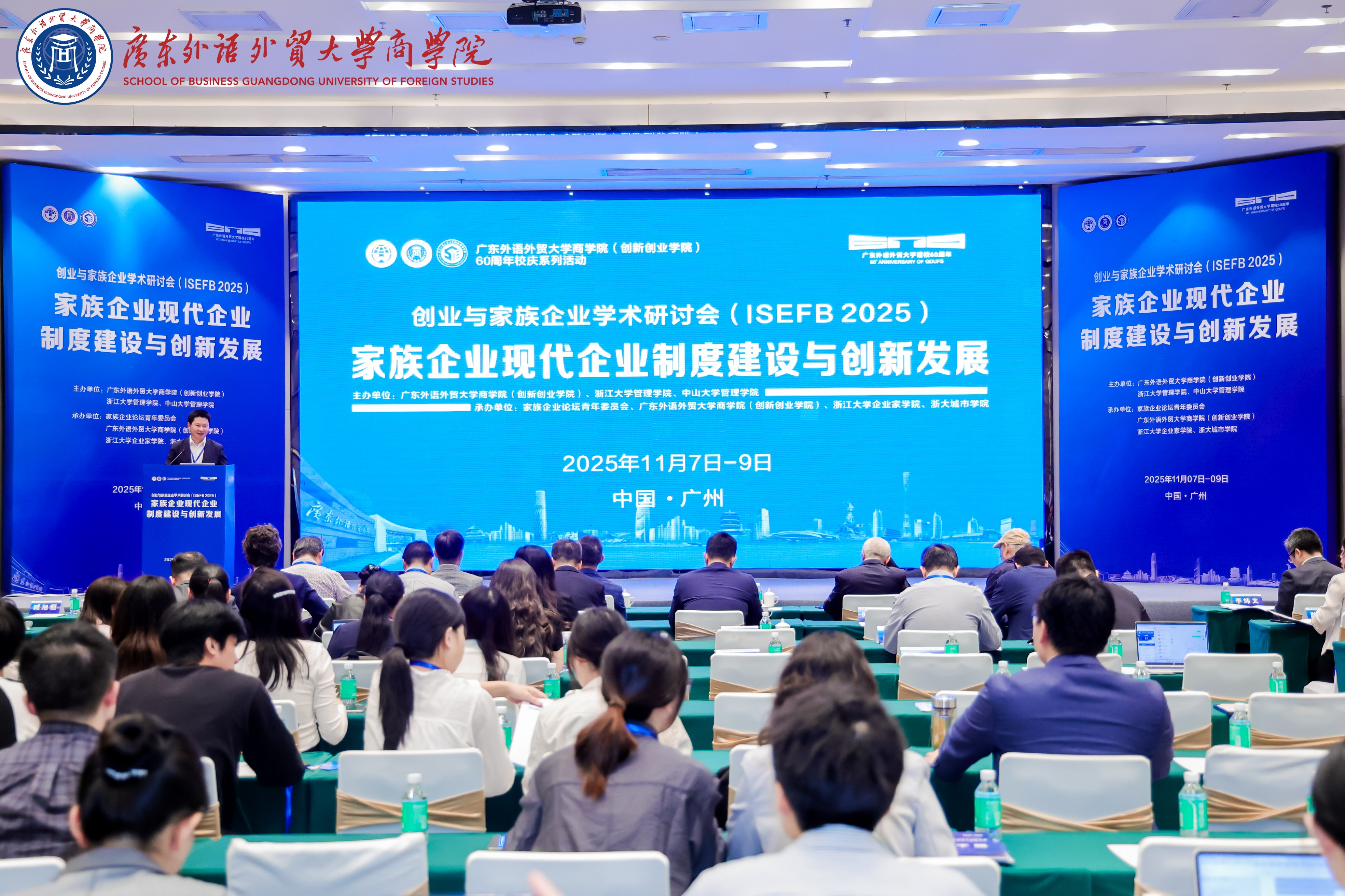 2025年11月07日至09日,由广东外语外贸大学商学院、创新创业学院,浙江大学管理学院和中山大学管理学院主办,家族企业论坛青年委员会,广东外语外贸大学商学院、创新创业学院,浙江大学企业家学院及浙大城市学院联合承办的2025年创业与家族企业学术研讨会在广州顺利召开。本次会议的主题为“家族企业现代企业制度建设与创新发展”。本次会议通过主题报告、分会场学术交流、期刊专刊工作坊、期刊编辑面对面、青年学者论坛和优秀成果奖颁发等形式,吸引了来自国内外近100所高校的200多名专家学者齐聚此地,共同探讨创业与家族企业研究领域内热点话题与前沿趋势,尽享学术交流的盛宴。其中,广东外语外贸大学党委常委、副校长何传添教授致开幕辞,广东外语外贸大学党委常委、副校长申明浩教授作主题演讲。
