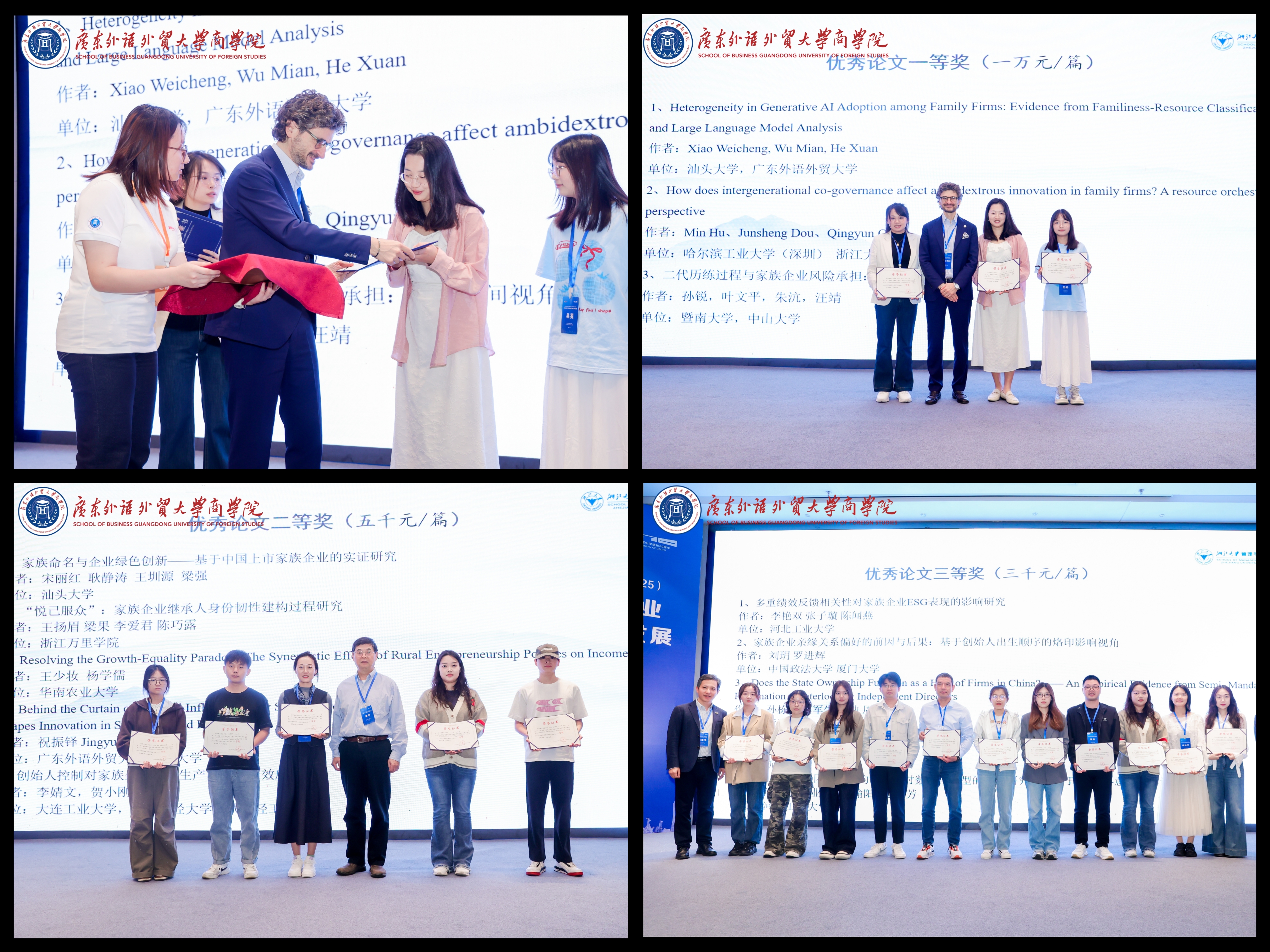 此次会议的成功举办不仅促进了中国家族企业研究的学术对话,搭建了学界与业界交流的平台,为家族企业研究的深化与学术人才的培养做出了贡献。广东外语外贸大学商学院、创新创业学院将继续致力于推动国际化与数字化教育,为创业与家族企业研究与实践贡献更多智慧。
