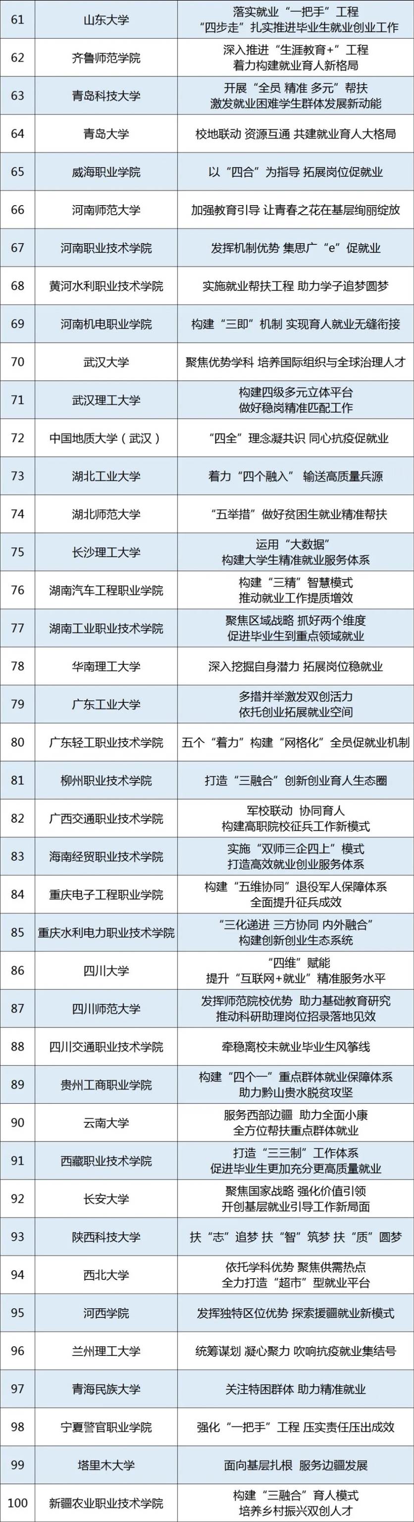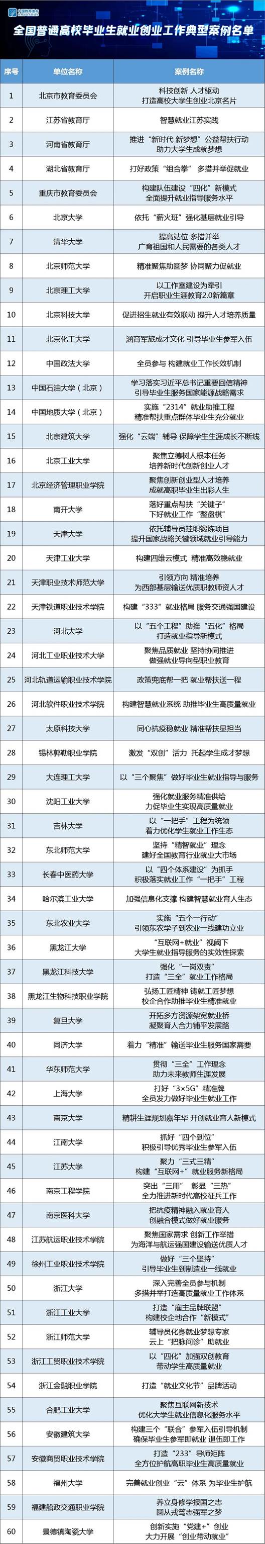 全国普通高校毕业生就业创业工作典型案例名单(图源自“微言教育”公众号)