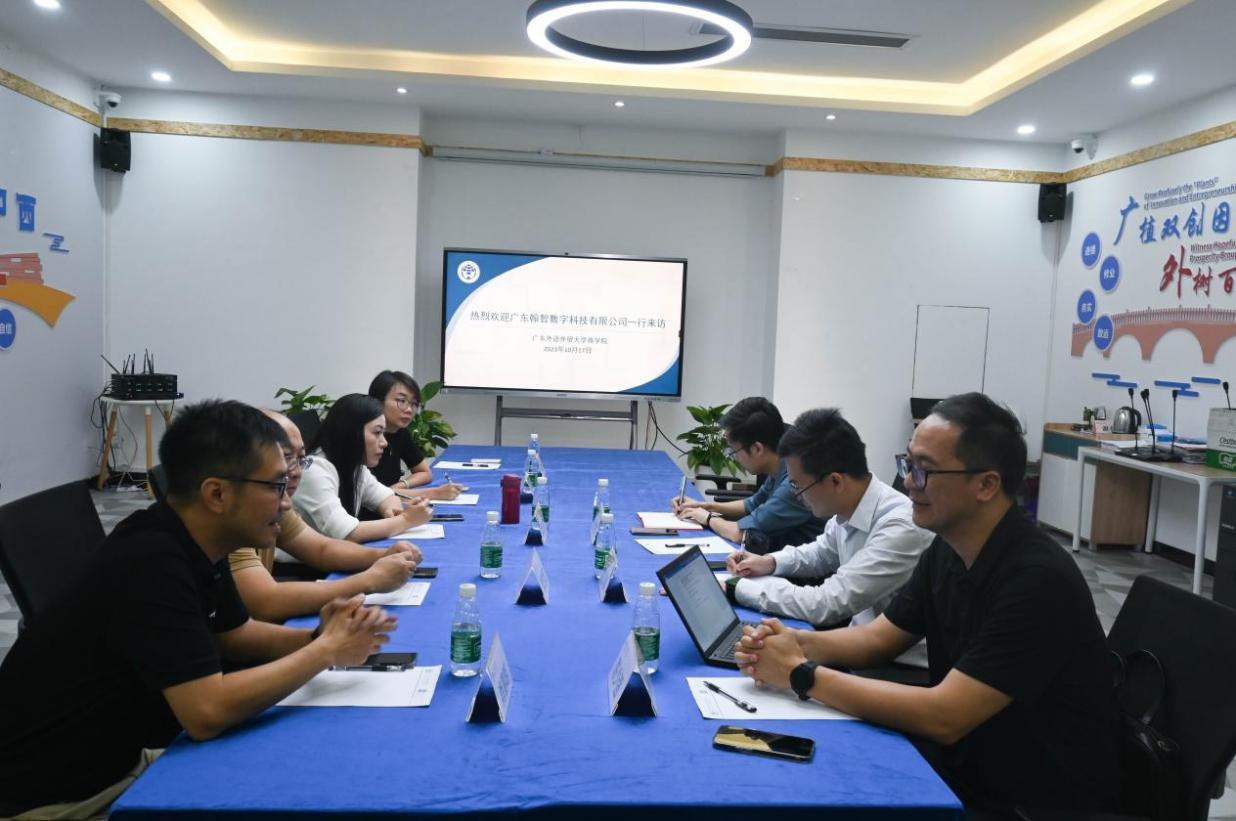 为促进校企良好合作,加强商学院数字化建设,推进数字化教育,10月17日下午,广东翰智数字科技有限公司(以下简称“翰智数科”)总裁陈少强、副总经理翁义春、总监张树烨来访我院调研国家级创新创业教育实践基地。我院党委书记肖喜明、副院长曾楚宏、人力资源管理专业系主任谢俊、全英教学部主任张蔼恒、副主任瞿瑛瑛等老师参加本次交流活动。