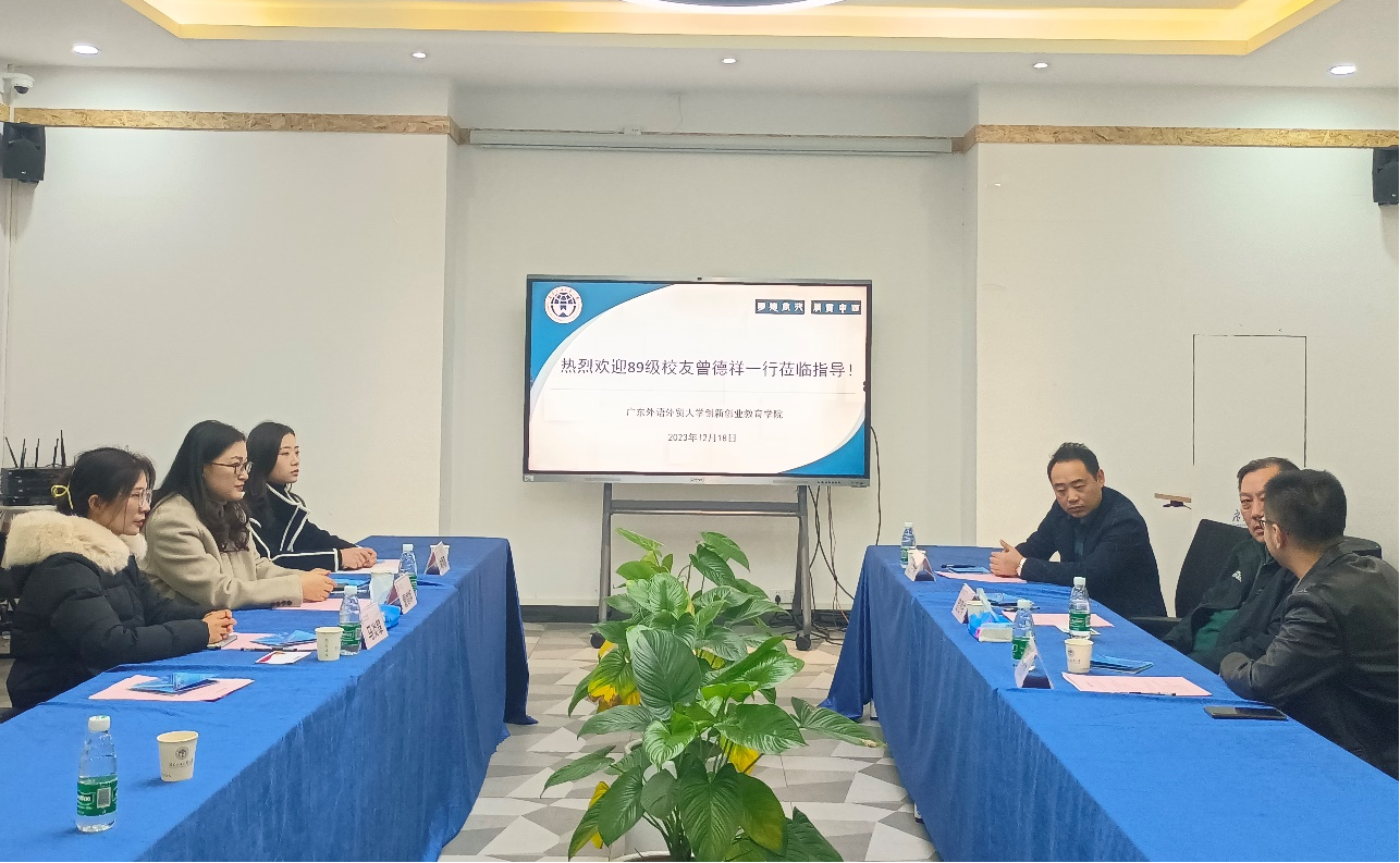 座谈会上,肖喜明代表学院欢迎曾德祥一行的到访,并介绍国家级创新创业教育实践基地的建成和申报情况,感谢校友对学校创新创业教育工作的大力支持。康为茂介绍近年来我校毕业生的就业创业情况和毕业生就业薪资水平。曾德祥回顾在广外的学习时光、介绍自身创业起源和创业经历,表示感谢母校的培养和关心。